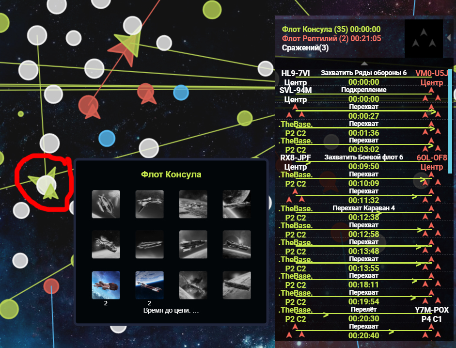 2. Отправляется второй флот в поддержку с временем подлета до окончания боя
