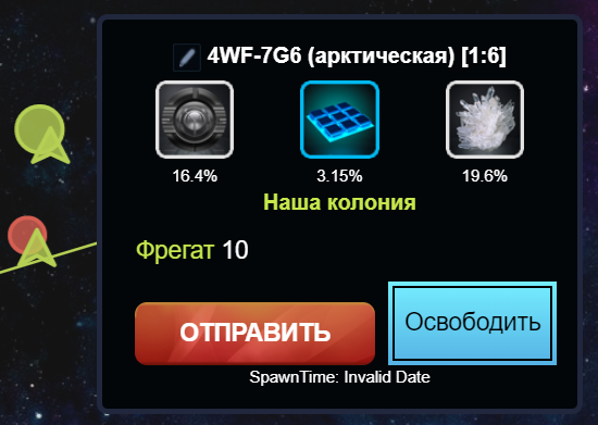 - Пассивный способ – это когда делают свои колонии, и раз в 6 часов с вероятностью, указанной на планете, вам может выпасть артефакт.