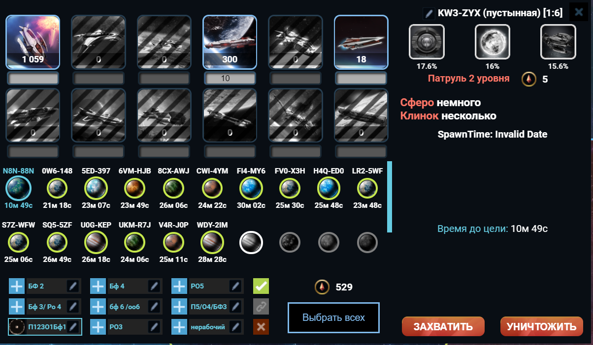 - Нажимаем на планету, где есть флот, и нажимаем «Захватить».
