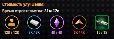 Добавлены элементы на иконки зданий в Жилом и Военном районе, а также в закладке Исследований и Улучшения флота: