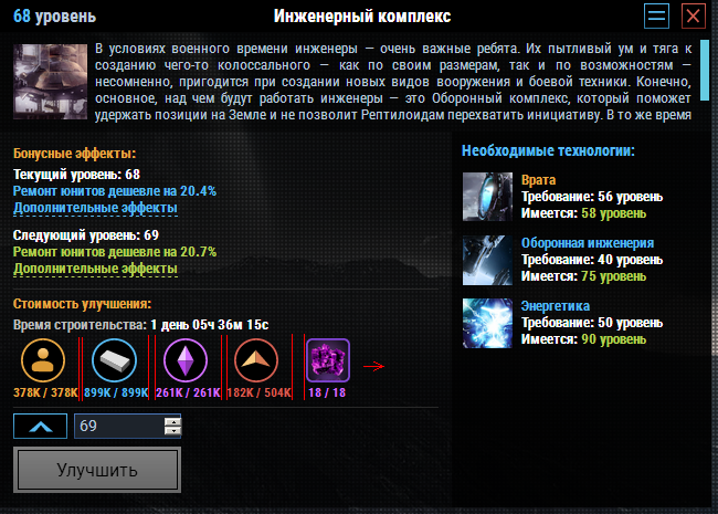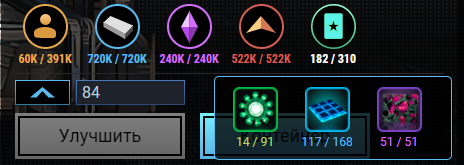 • Изменено отображение необходимых для апгрейда ресурсов: теперь из надписи можно понять, сколько ресурсов есть у игрока в данный момент;