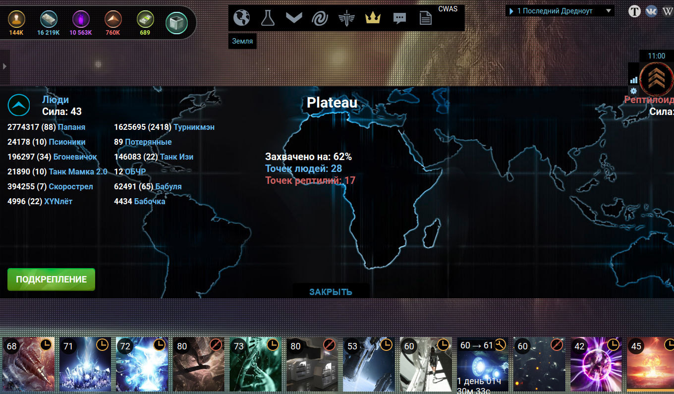 4. Жмём на свой сектор, затем на кнопку "Подкрепление"