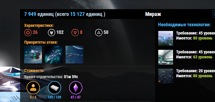 Количество миражей отображается некорректно, полное количество больше почти в 2 раза от реального значения, на других планетах максимум 200 в сумме, перед этим отправлял их в бой