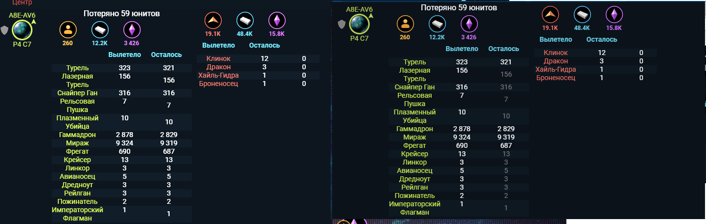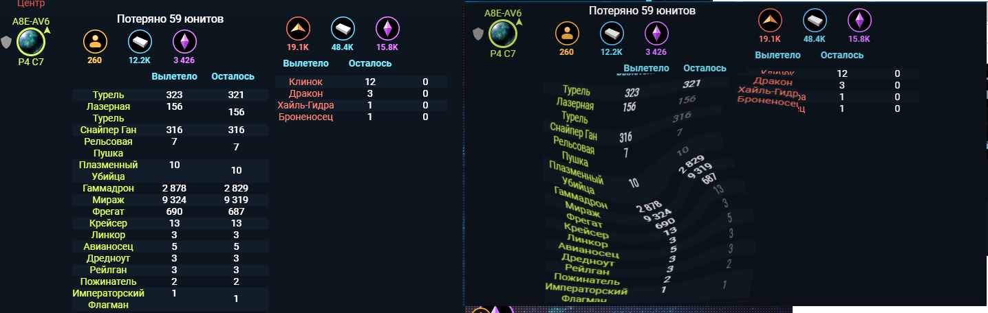 Результат космо боя: Затенять не изменившееся кол-во юнитов
