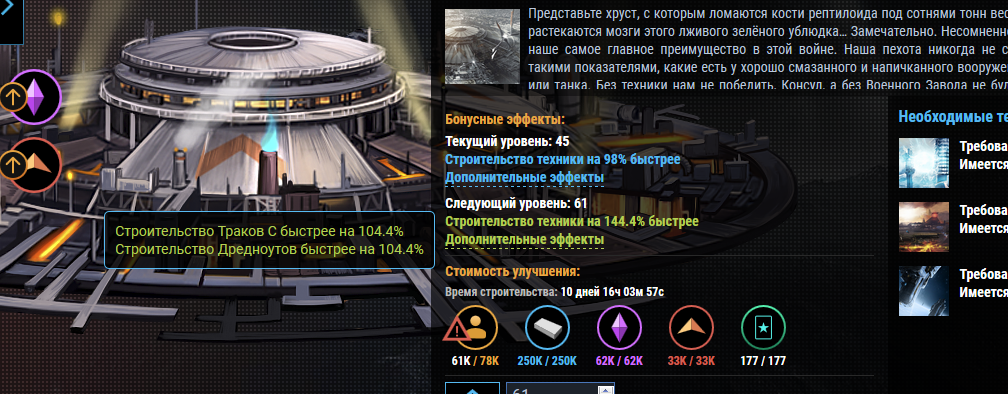 Неправильное отображение ускорения строительства Военного завода