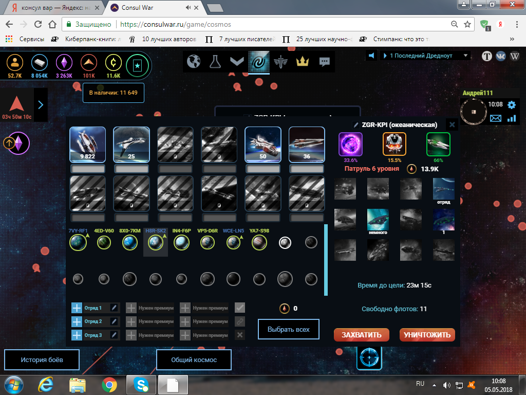 На первом три флота, что я отправил, на втором оставшиеся 11 запусков флота.