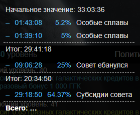 Отдельно стоит упомянуть субсидии совета. Это - бонус новичков, который становится все меньше и меньше с каждым днем с момента вашей регистрации. Он обеспечивает вам небольшой прирост ресурсов, но очень хороший прирост к скорости постройки\исследования. Для быстрого развития стоит стараться как можно быстрее реализовать этот бонус. Время - один из важнейших ресурсов в игре.