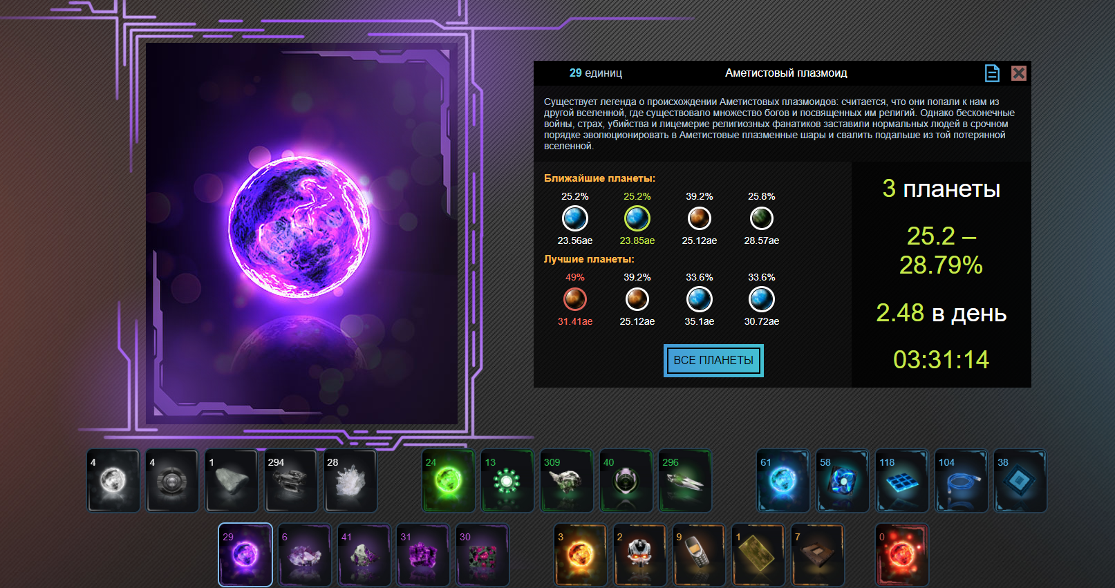 Т.е. максимум можно получить 9 артефактов в сутки, по 3 каждого вида - они указаны на каждой планете.