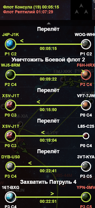 Враги, находящиеся в космосе имеют обозначения “Боевой флот” “Патруль” “Ряды обороны” и “Караван” уровнем от 1 до 7, и на каждый уровень нужен разные по силе и составу эскадры вашего флота. В дальнейшем я буду называть их БФ\П\РО для сокращения.